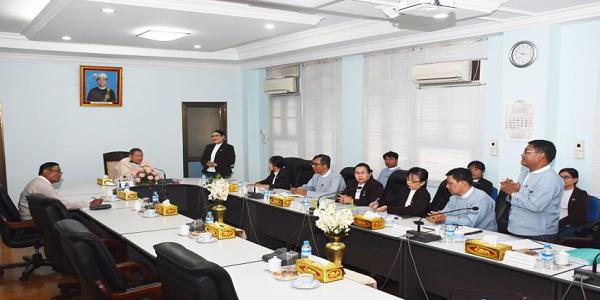 ( ၁၉ - ၂- ၂၀၁၉ ) ရက်နေ့တွင် စတင် ဖွင့်လှစ်ခဲ့သော မြန်မာ့နိုင်ငံခြားကုန်သွယ်မှုဘဏ်၏ နိုင်ငံခြား ငွေလဲလှယ်ရေးကောင်တာသို့ စီမံကိန်း၊ဘဏ္ဍာရေးနှင့် စက်မှုဝန်ကြီးဌာန၊ ဒုတိယဝန်ကြီး လာရောက် စစ်ဆေး၍ လိုအပ်သည်များကို လမ်းညွှန်မှာကြားစဉ်။