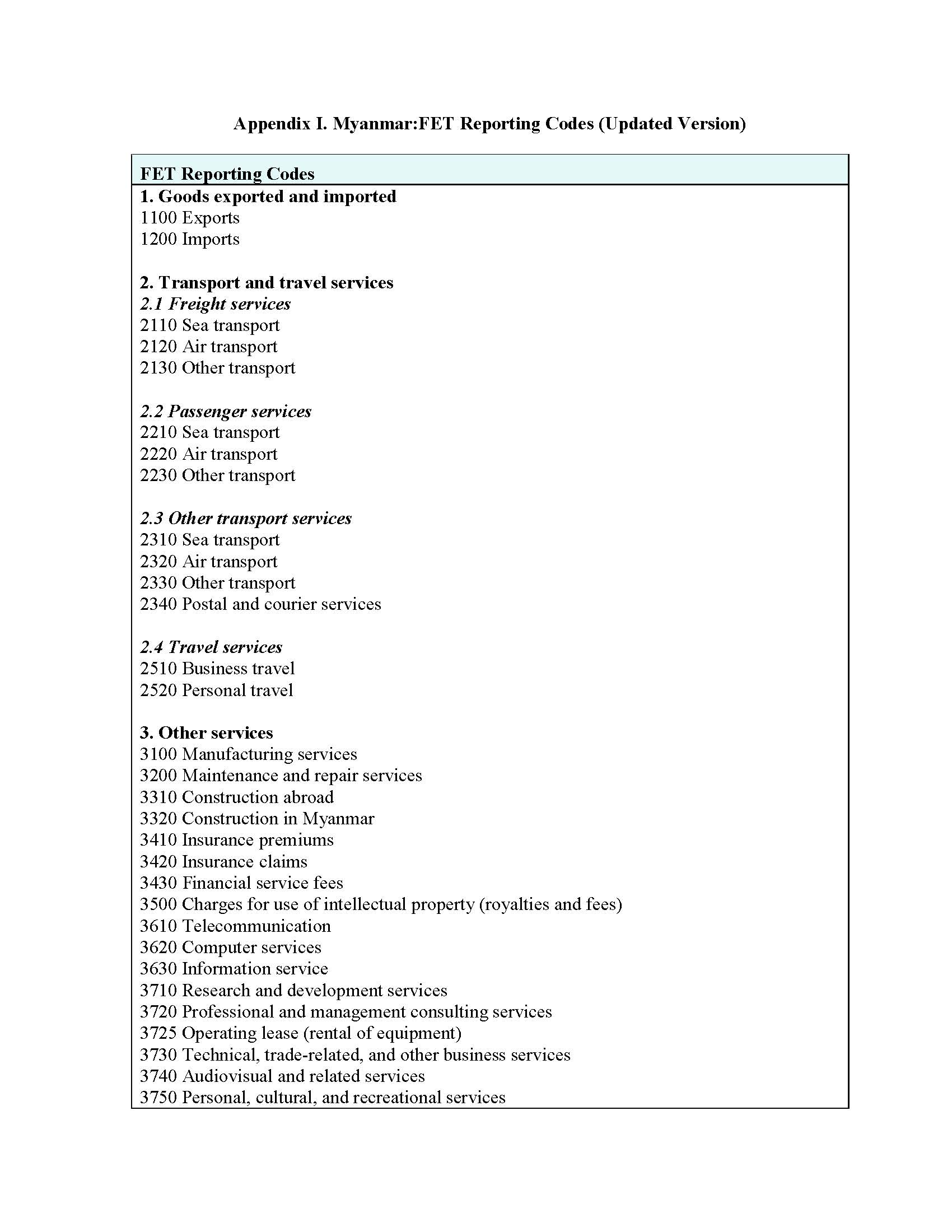 International Transaction Reporting System (ITRS) Codes/ FET Reporting Codes