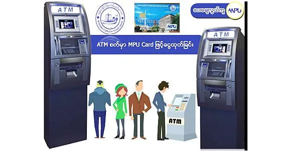 - 1% charge to withdraw cash at the ATM of other banks. (e.g 100 Kyat for withdrawal of 10,000 Kyat)